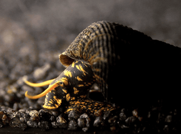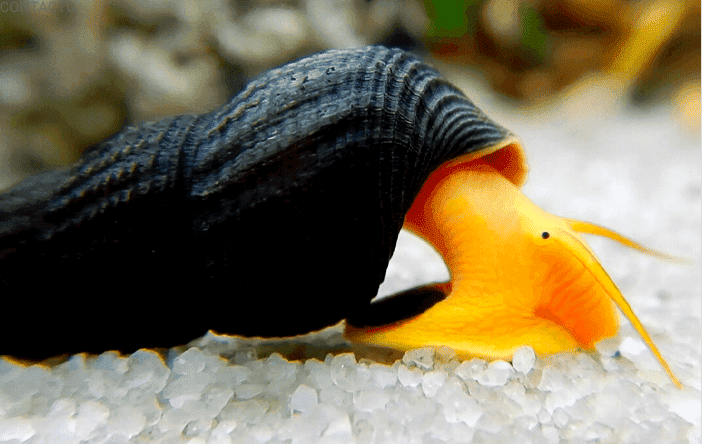El caracol Tylomelania, originario de Indonesia, es una especie llamativa por su gran tamaño, concha alargada y colores intensos que varían entre negro, naranja y amarillo, según la variedad. Su comportamiento pacífico lo hace ideal para acuarios plantados, donde cumple una importante función como consumidor de algas y restos orgánicos.